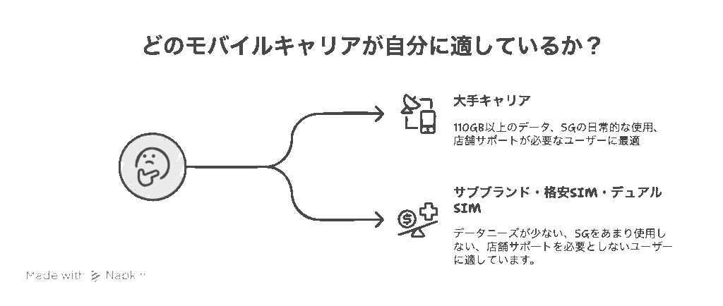もしあなたがその“狭いけれどハマる層”に該当するなら、大手キャリアは“最高の選択肢”です。迷わず恩恵(5G体験・安定・即時サポート)を取りにいきましょう!